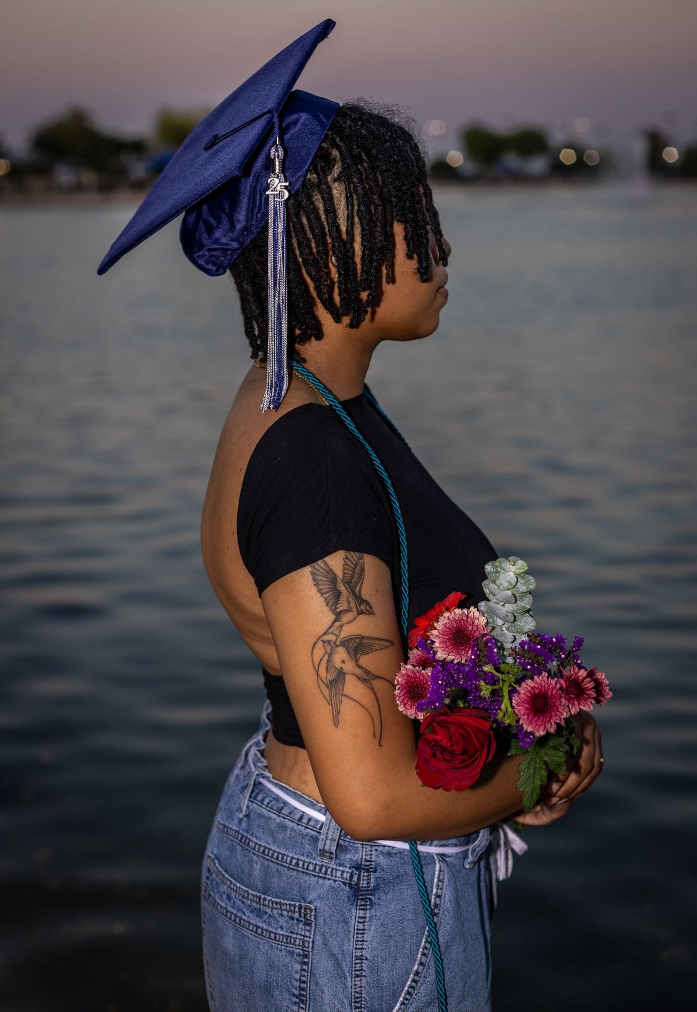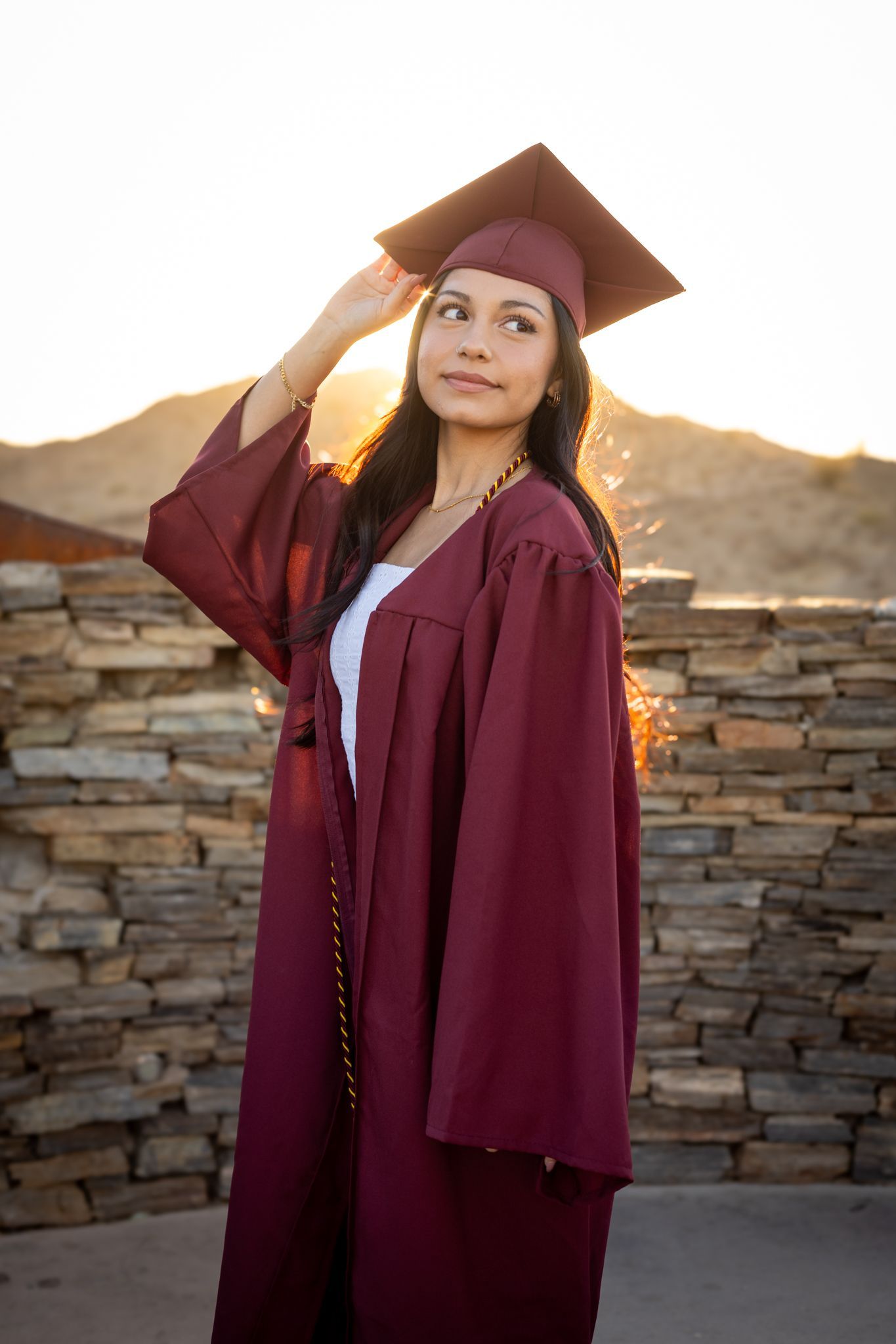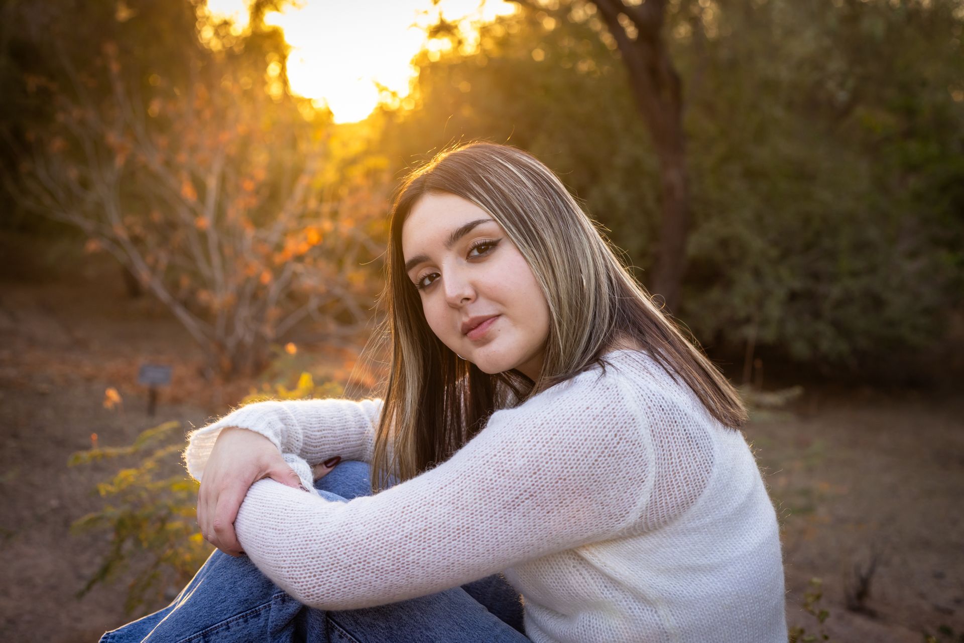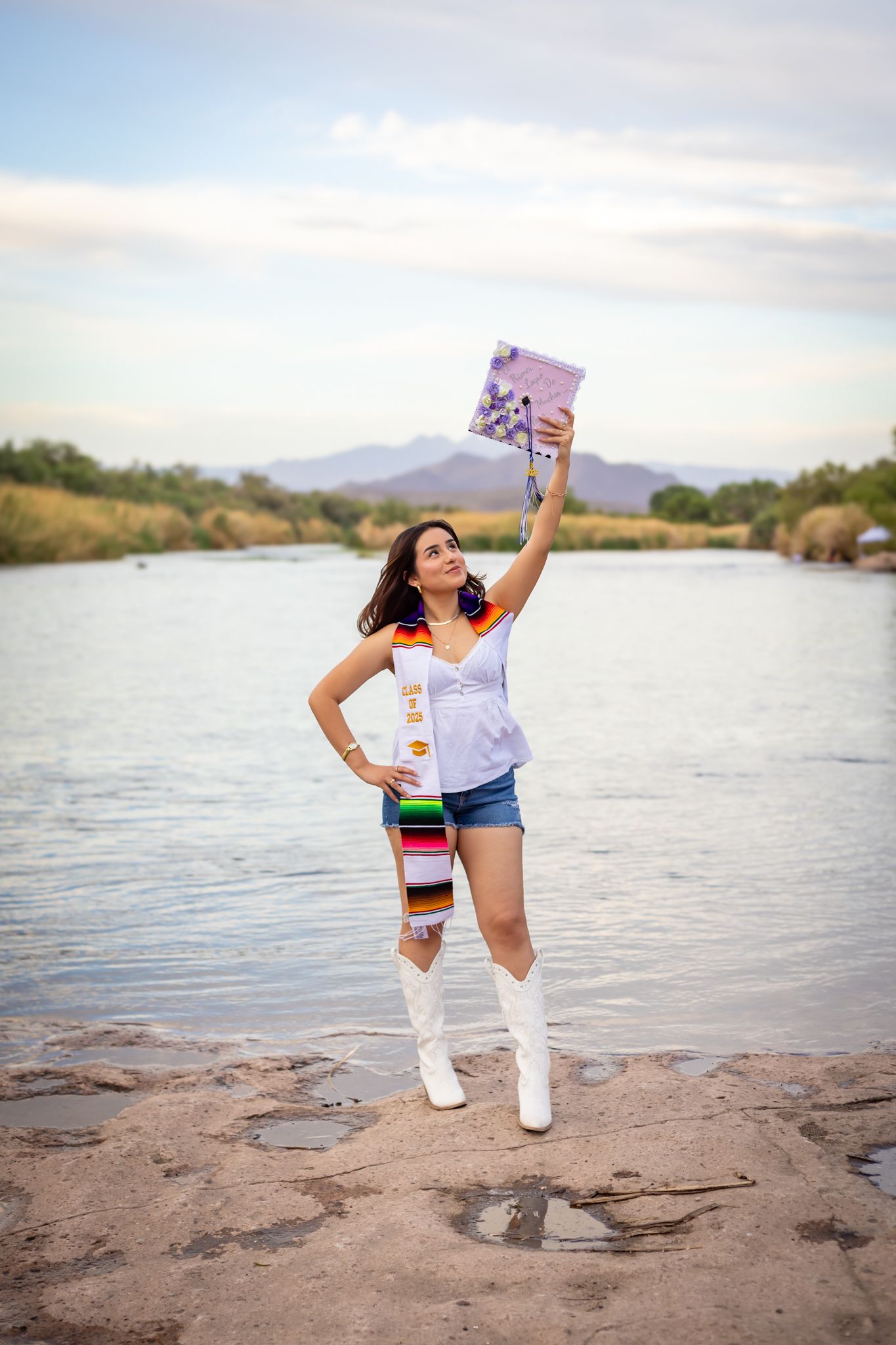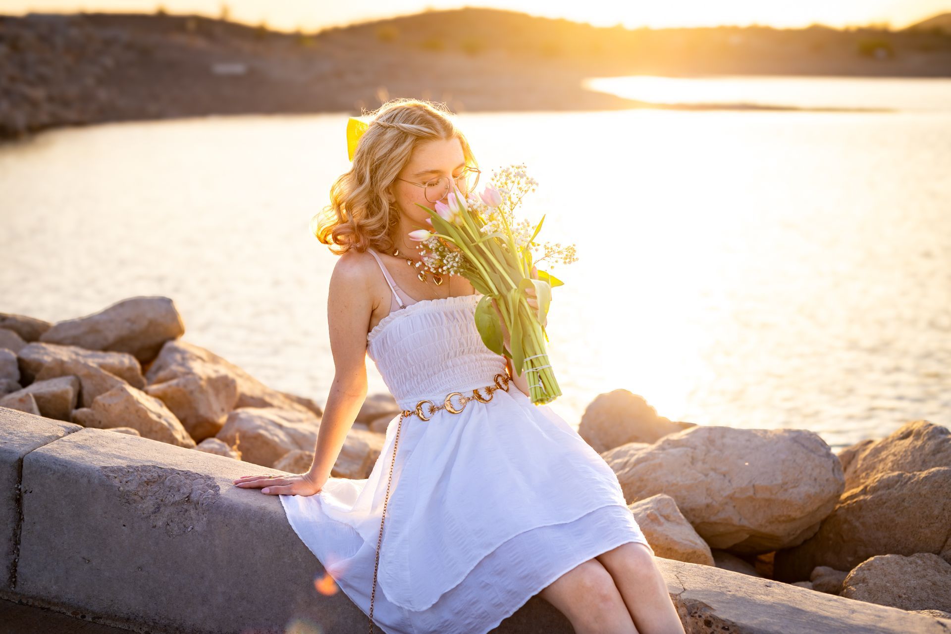 ButtonAurora takes in the scent and the view of the beautiful Lake Pleasant sunset during her senior photo session.