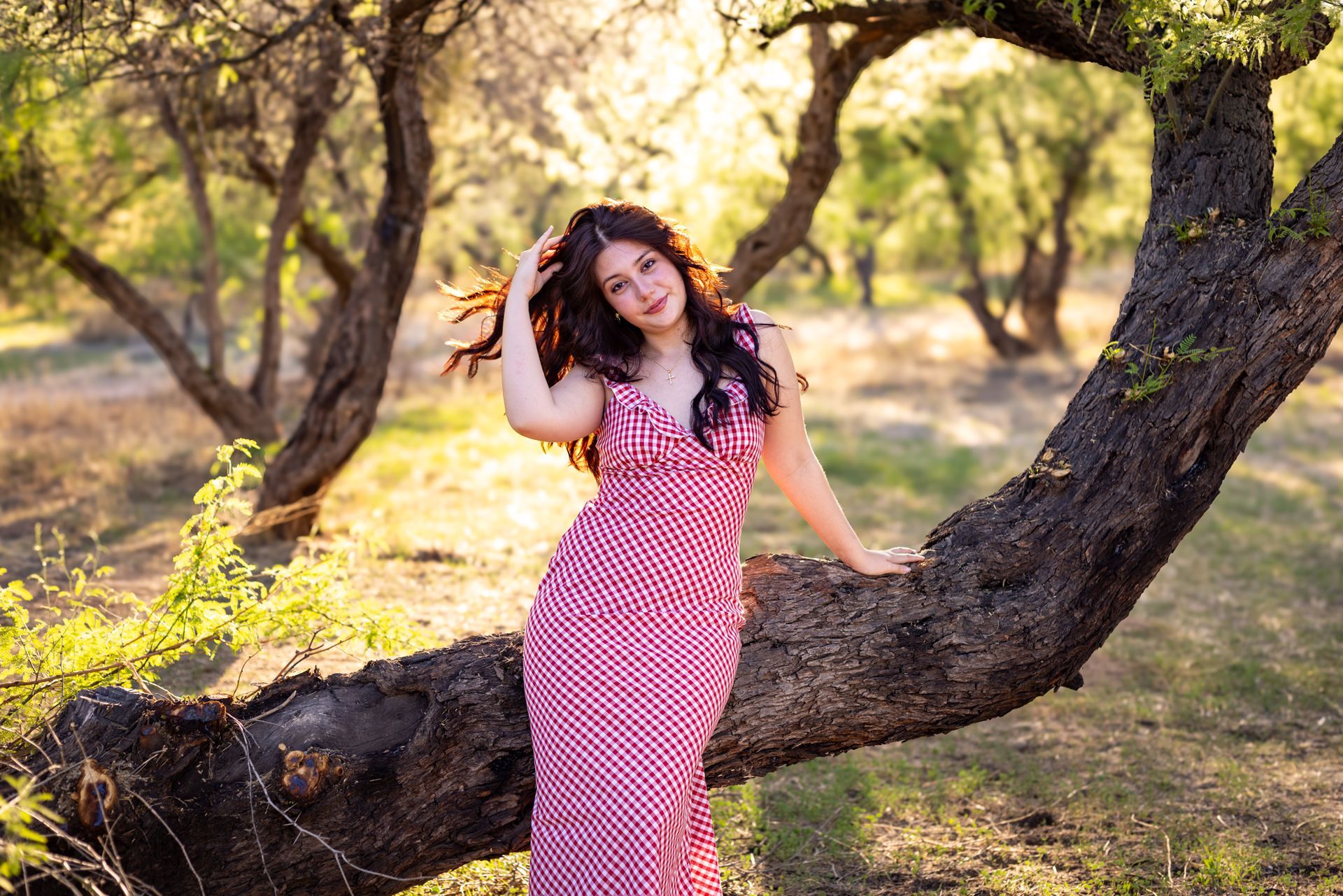ButtonThis Shadow Ridge High School graduate poses for her senior photos in the Salt River forest.