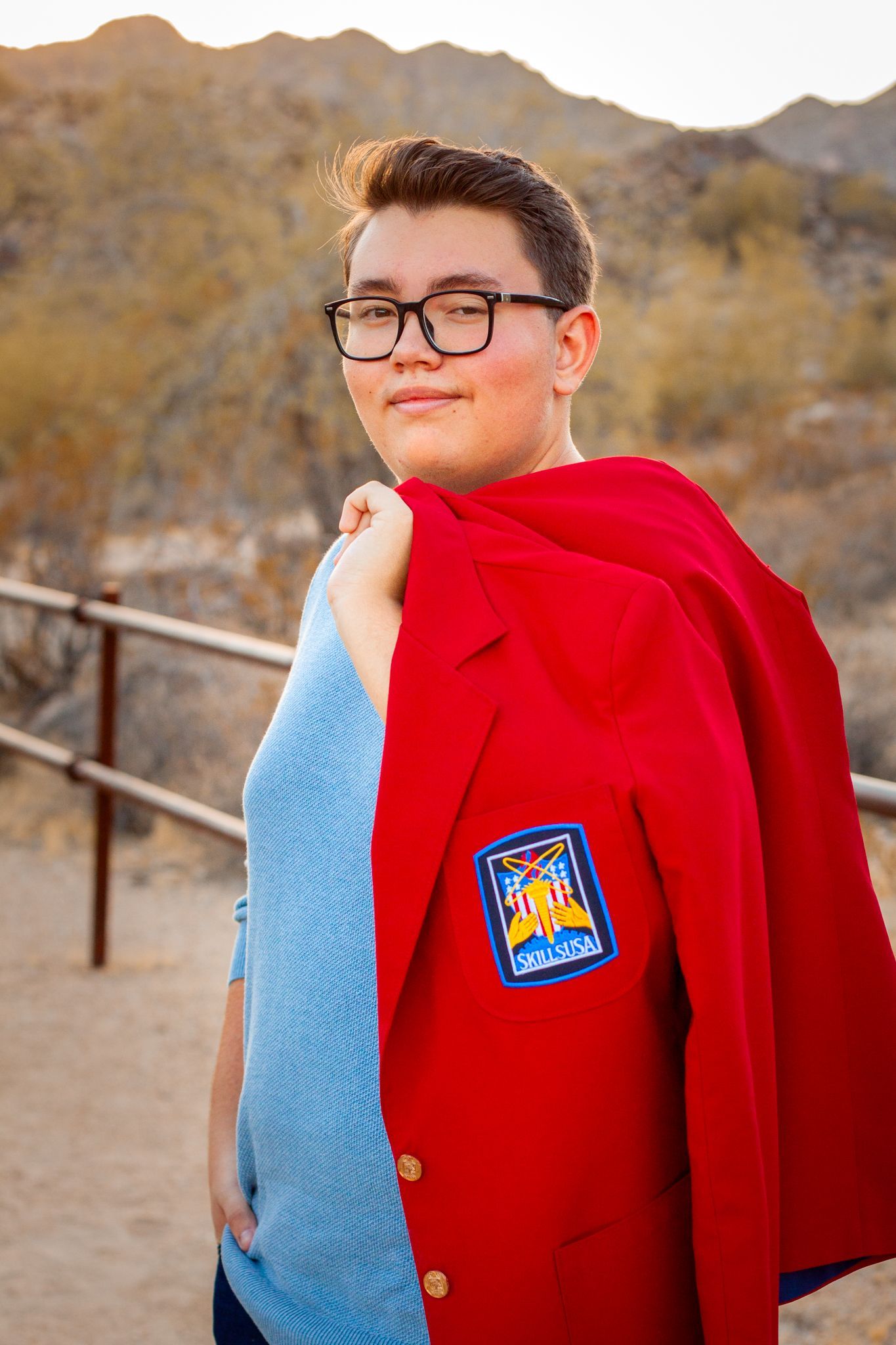 High school senior Scott Russomano proudly flaunts his SkillsUSA red blazer as his chapter's vice president.